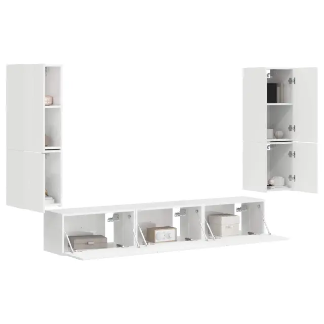 • Raznolikost v velikosti: Komplet vključuje omarice različnih velikosti, ki ustrezajo različnim potrebam. Ne glede na to, ali gre za medijske naprave ali osebne stvari, raznolikosti omogočajo prilagodljivost in funkcionalnost.