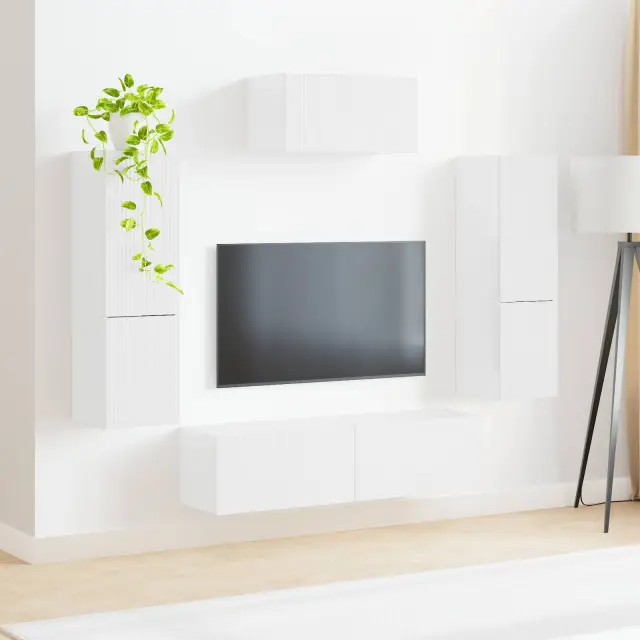 vidaXL Komplet TV omaric 4 pcs Visok sijaj bela Konstruiran les