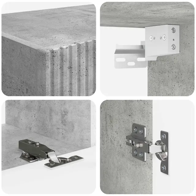 • Večstopenjsko shranjevanje: Ta set ponuja dovolj prostora za elektroniko, knjige ali dekorativne stvari. Drsna vrata omogočajo prilagodljivo upravljanje prostora, kar zagotavlja organiziran prostor. Zaprti prostori nudijo diskretno shranjevanje, kar ohranja urejen izgled vašega prostora.