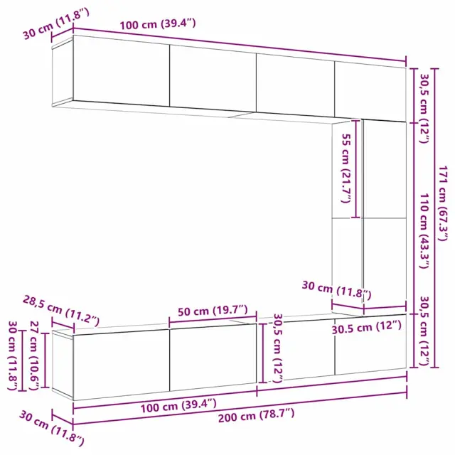 vidaXL Komplet TV omaric 5 pcs Črni hrast 100 x 30 x 30 cm