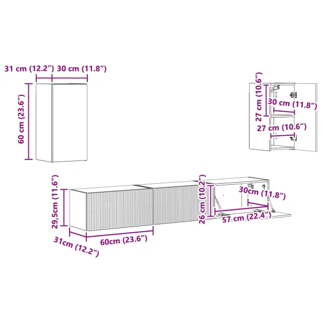 Ta moderna TV omarica je vrhunec sodobnega notranjega oblikovanja, super za minimalistične in stilske dnevne prostore. Brez težav združuje funkcionalnost z estetiko in ponuja elegantno rešitev za vse vaše stvari, povezane z zabavo. Set je premišljeno zasnovan, da se prilega sodobnim domovom z čistimi linijami in minimalno okrasitvijo. Povečajte svojo dnevno sobo s tem setom, ki skrbi za organizacijo in daje šik videz. Idealno za tiste, ki iščejo stil in uporabnost v pohištvu, ponuja dovolj prostora za TV enote in dodatke ter preobraža vaš medijski center v osrednji kos elegance in reda.
