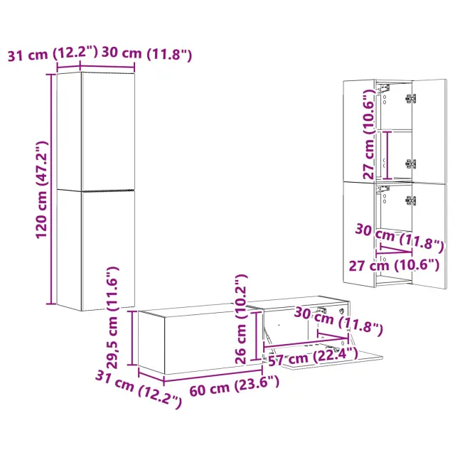 Ta vidaXL pohištveni set je vsestranski dodatek, ki preoblikuje vsako sobo v harmonijo stila in funkcionalnosti. Modern videz se brez težav ujame v sodobne in tradicionalne prostore, ponuja možnosti razporeditve. Zasnovan za večkratno uporabo, se ujema z bivalnimi prostori in kotički za učenje ter optimizira shranjevanje in prikazovanje osebnih predmetov.