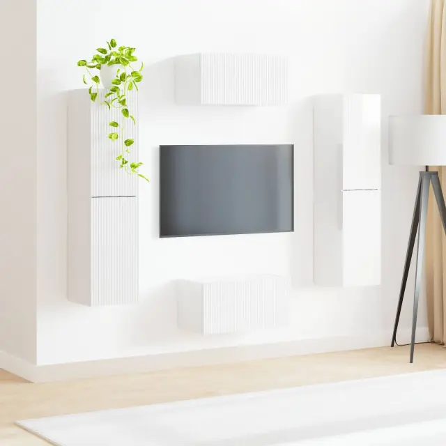 vidaXL Komplet TV omaric 6 pcs Visok sijaj bela Konstruiran les