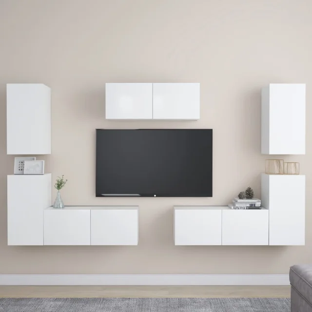 vidaXL Komplet TV omaric 7-delni bela iverna plošča
