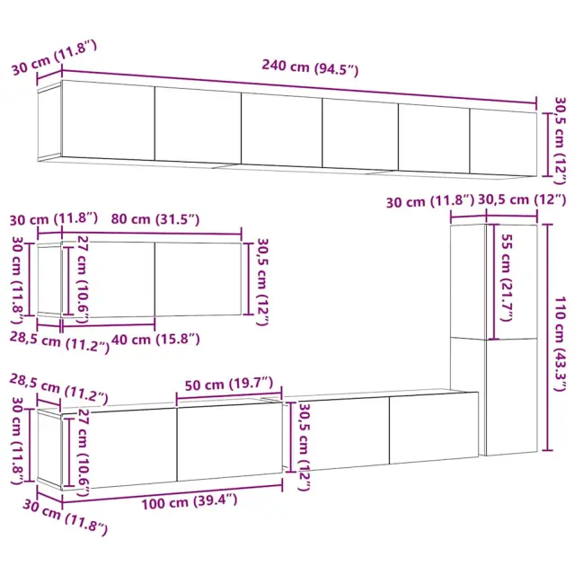 vidaXL Komplet TV omaric 7 pcs Črni hrast 30.5 x 30 x 110 cm