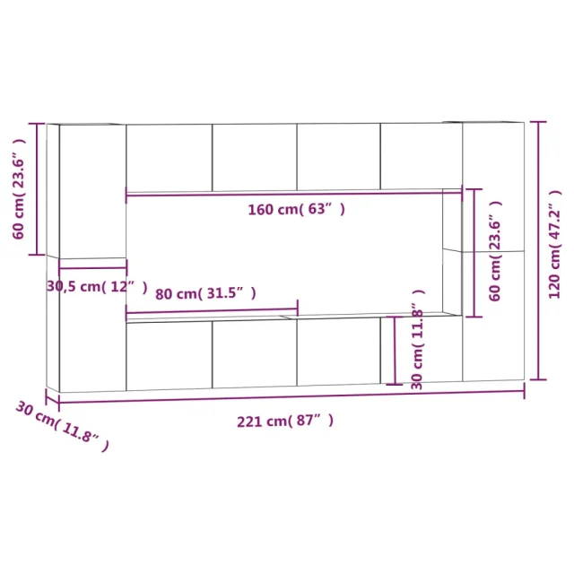 vidaXL Komplet TV omaric 8-delni betonsko siv konstruiran les