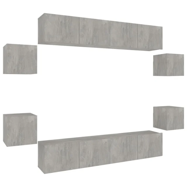 vidaXL Komplet TV omaric 8-delni betonsko siv konstruiran les