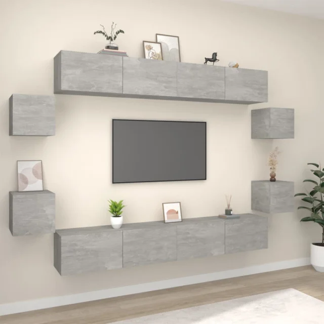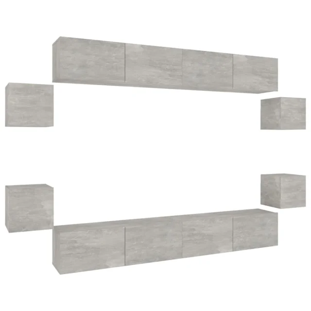 vidaXL Komplet TV omaric 8-delni betonsko siv konstruiran les