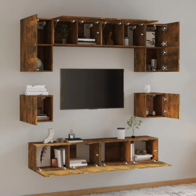 Ta klasični komplet TV omaric s trendovskim, a praktičnim dizajnom je izdelan tako, da bo postal ključna točka vašega prostora.