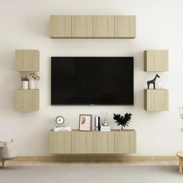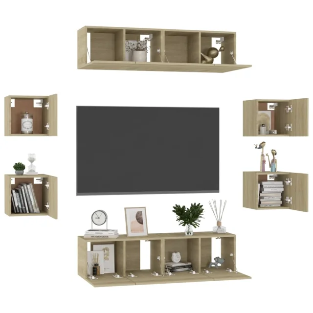 Ta komplet trdnih TV omaric s trendovskim in praktičnim dizajnom je izdelan tako, da bo postal ključna točka vašega prostora.