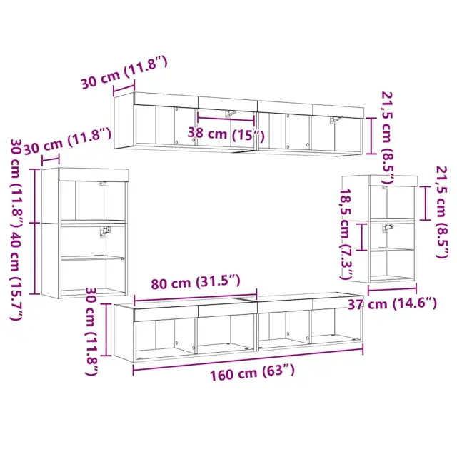 vidaXL Komplet TV omaric 8 pcs artisan hrast Konstruiran les
