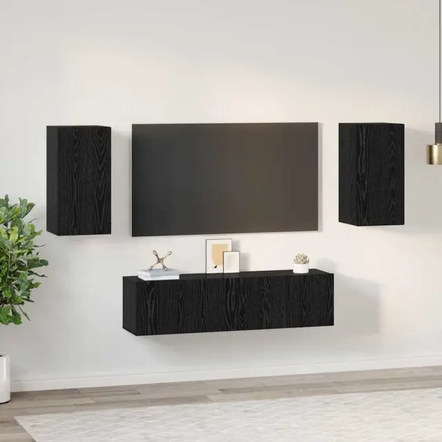 Ta set stenske omare za televizor je prefinjena rešitev za shranjevanje in prikazovanje v dnevni sobi, ki ponuja odlično kombinacijo oblike in funkcionalnosti. Sodobno oblikovanje s čistimi linijami in enostavnostjo je idealno za sodobne domove. Ko ga postaviš na steno, doda prostoru vizualno dinamiko in pusti prostorno dno. Inženirski les zagotavlja trdnost in trajnost ter ponuja prostor za raznolike elektronske in dekorativne predmete. Pravokotna oblika omogoča, da se set brez težav prilagodi različnim postavitvam, bodisi poleg televizorja ali kot samostojna enota.