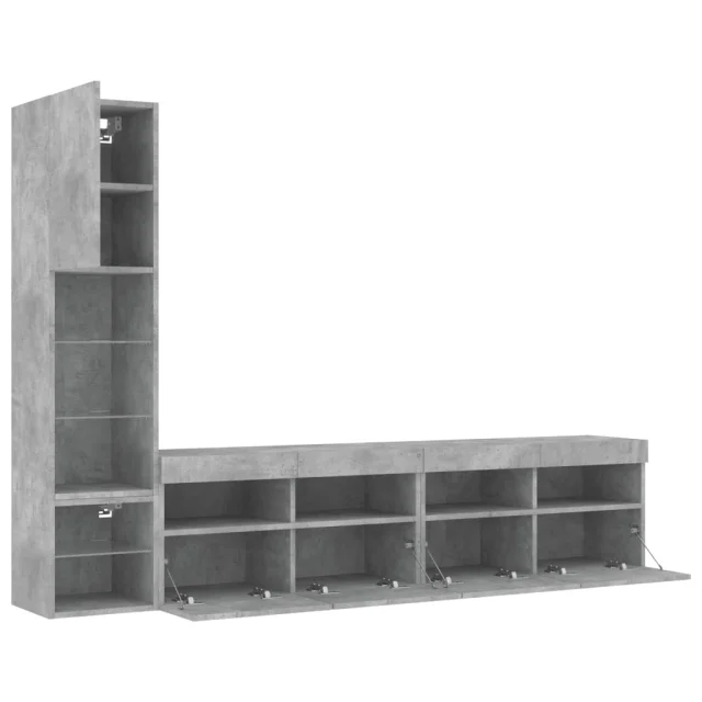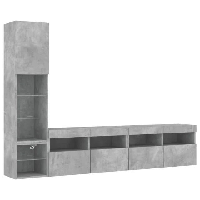 RGB LED luči: TV enota je opremljena z živahnimi RGB LED lučkami. Z različnimi prilagodljivimi meniji lahko brez težav spreminjate barvo luči in celo nastavite njihovo samodejno prilagajanje. Te LED lučke poudarjajo sodoben videz lebdeče TV omarice in povečujejo njeno privlačnost.