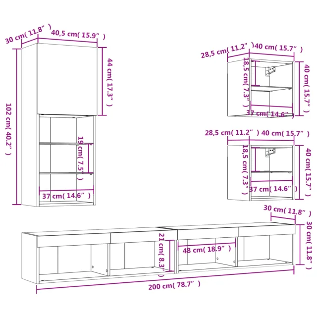 vidaXL Komplet TV omaric LED 5-delni bel inženirski les