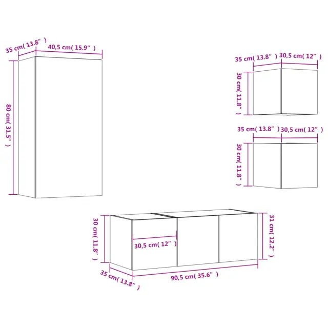 • 3 x Stenska omarica: 30,5 x 35 x 30 cm (D x Š x V)