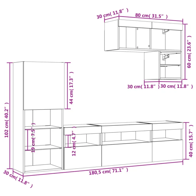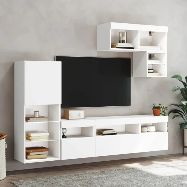 vidaXL Komplet TV omaric LED 6-delni bel inženirski les
