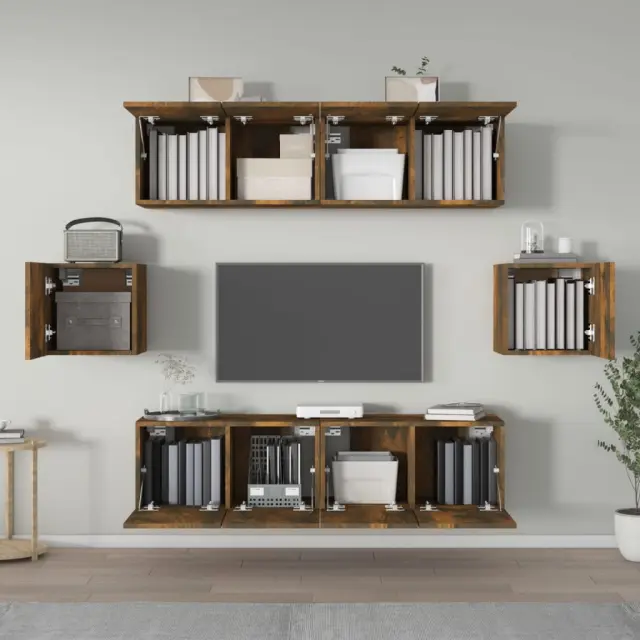 Ta klasični komplet TV omaric s trendovskim, a praktičnim dizajnom je izdelan tako, da bo postal ključna točka vašega prostora. Trden material: Inženirski les se ponaša z izjemno kakovostjo, gladko površino ter močjo, stabilnostjo in odpornostjo na vlago.Veliko prostora za shranjevanje: Komplet TV stojal nudi dovolj prostora za shranjevanje vseh vaših revij, DVD-jev in drugih predmetov, da bodo dobro organizirani.Funkcija namestitve na steno: TV konzola ne zavzame nobenega prostora na tleh. Enostavno jo namestite na steno. Opomba:Vijaki in vtiči za notranjost stene niso priloženi. Poiščite vijake in vtiče, ki so primerni za vaše stene. Če niste prepričani, za pomoč prosite profesionalca. Preberite in natančno sledite vsem korakom v navodilih.Vsakemu izdelku je priložen priročnik za enostavno sestavljanje.Barva: Dimljeni hrastMaterial: Inženirski lesTV omarica (z 2 vrati): 60 x 30 x 30 cm (Š x G x V)TV omarica (z 1 vrati): 30,5 x 30 x 30 cm (Š x G x V)Paket vsebuje:4 x TV omarica (z 2 vrati)2 x TV omarica (z 1 vrati) 3120266