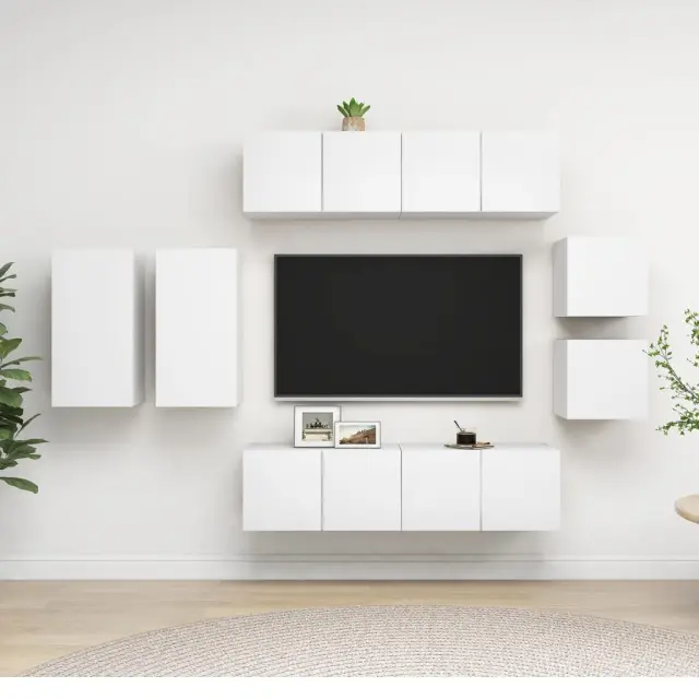 vidaXL Komplet TV omaric 8-delni bela iverna plošča