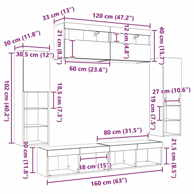 vidaXL Komplet TV omaric z LED lučmi 6 pcs Star les Konstruiran les