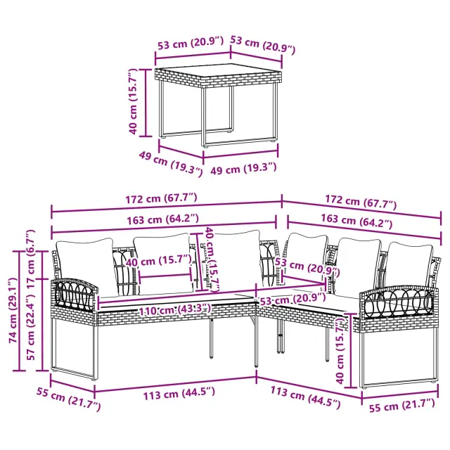 Ta moderni vrtni kavč je idealen za vašo teraso ali vrt. Njegov minimalistični dizajn z čistimi linijami in trdno konstrukcijo vam bo pomagal ustvariti prijetno okolje za druženje. Ta set je resnično umetniška izjava, ki prinaša tako funkcionalnost kot estetiko. Ne glede na to, ali organizirate zabavo ali si želite mirnega večera pod zvezdami, bo ta set ustvaril sproščeno vzdušje, ki ga potrebujete.