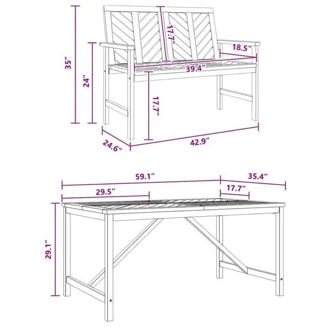 • Popolni komponenti: Set vključuje naslonjala, noge in okvir, vse iz istega visokokakovostnega akacijevega lesa, kar zagotavlja usklajen videz po barvi in teksturi. Ta usklajena izbira lesenih delov naredi celotno obliko udobno in prijetno.