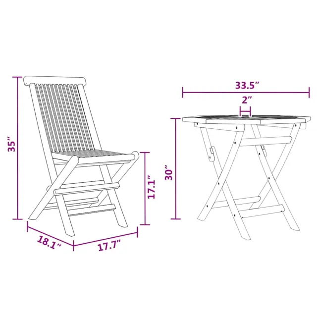 • Stoli in miza se lahko enostavno zložijo za shranjevanje
