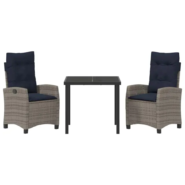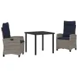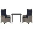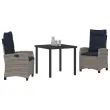 vidaXL Komplet za jedilnico v vrtu 3 pcs Siva poli ratan