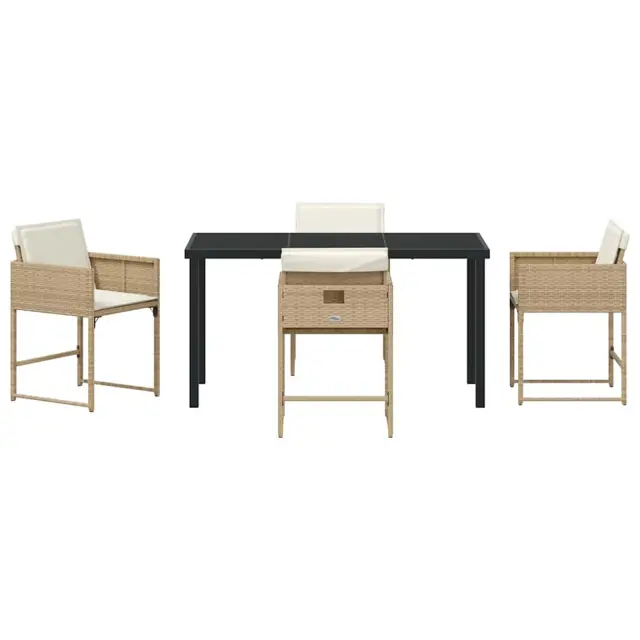 vidaXL Komplet za jedilnico v vrtu 5 pcs Bež poli ratan