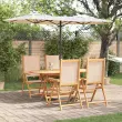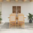 Ta rustikalni vrtni jedilni set seva sodobno eleganco, popoln za zunanje druženje. Narejen iz trdnega akacijevega lesa s razkošno polirano obdelavo, ta set združuje sodoben slog z rustikalnim čarom, kar ponuja sofisticirano, a sproščeno jedilno izkušnjo. Udoben in funkcionalen, vsak element služi estetskemu in praktičnemu namenu, kar zagotavlja prijetne zunanje jedilne izkušnje za družine in prijatelje. Njegova zložljiva funkcija omogoča enostavno shranjevanje po uporabi, kar prihrani prostor in vzdržuje brezhiben izgled vrta.
