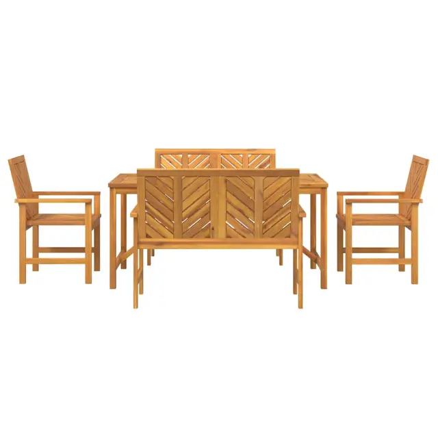 • Kakovostni materiali: Ta jedilni set je narejen iz trdnega akacijevega lesa, močen in odličnega videza. Akacija je znana po svoji čudoviti naravni zrnatosti in dobro prenese različne zunanje pogoje, zato je super za vsakodnevno uporabo. Ta material doda rustikalni pridih, a je dovolj trpežen za zunanjo uporabo.