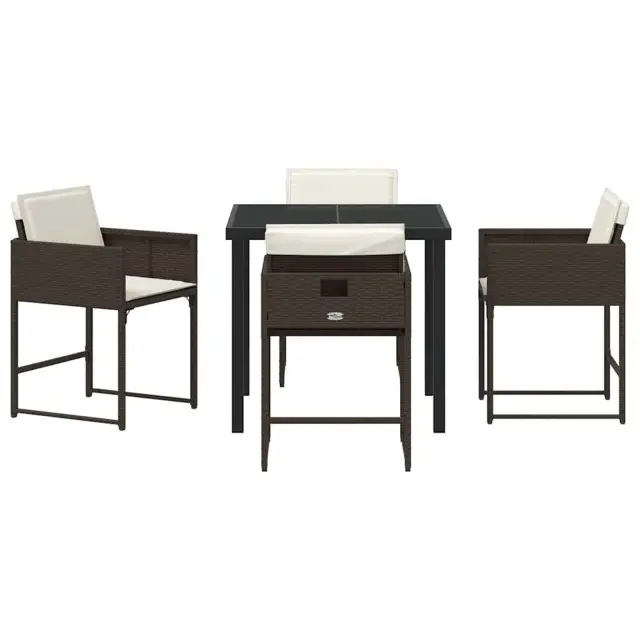 vidaXL Komplet za jedilnico v vrtu 5 pcs Rjava poli ratan