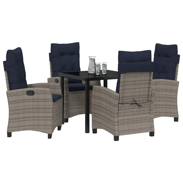 Ta moderni vrtni jedilni set je prava izbira za vaš zunanji prostor, popoln za poletne družinske in prijateljske mize. S svojimi čistimi linijami in trendovskim izgledom, resnično osveži terase, dekce ali vrtove. Zgrajen je za udobje in moč, ta set je odlična izbira za vsakogar, ki uživa v jedačih na prostem in dobri družbi. Njegov pameten dizajn se poda vsem stilom, od modernega do rahlo rustikalnega. Če iščete kombinacijo praktičnosti in elegance, ima ta jedilni set vse.