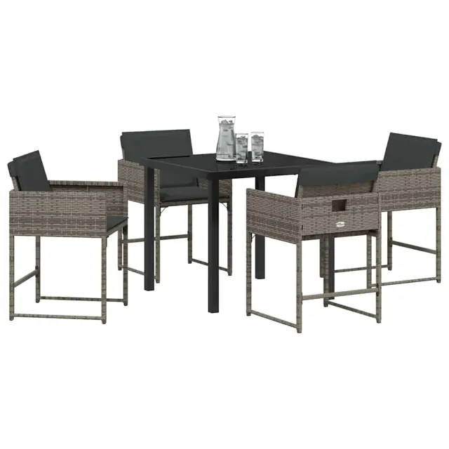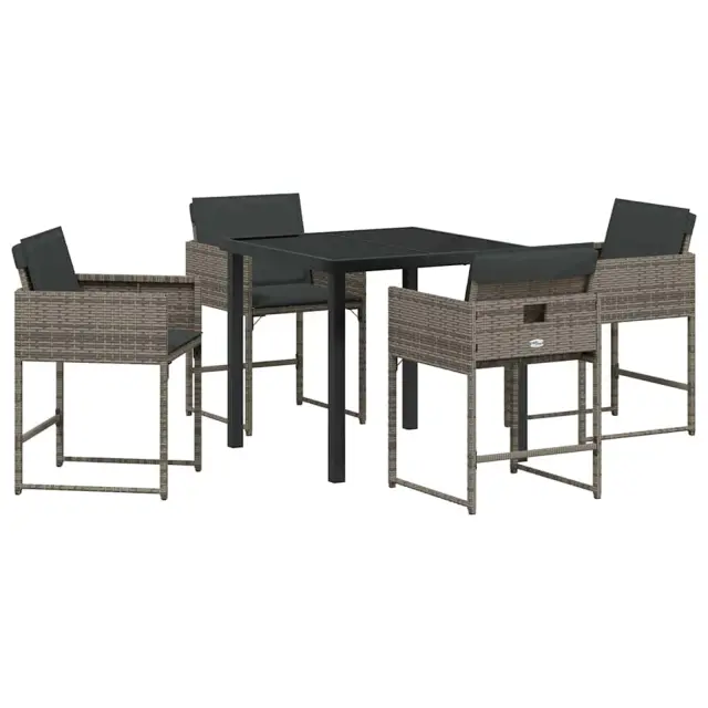vidaXL Komplet za jedilnico v vrtu 5 pcs Siva poli ratan