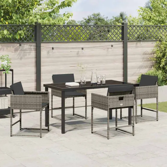 vidaXL Komplet za jedilnico v vrtu 5 pcs Siva poli ratan