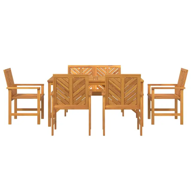 • Kakovostni materiali: Ta jedilni set je narejen iz trdnega akacijevega lesa, močen in odličnega videza. Akacija je znana po svoji čudoviti naravni zrnatosti in dobro prenese različne zunanje pogoje, zato je super za vsakodnevno uporabo. Ta material doda rustikalni pridih, a je dovolj trpežen za zunanjo uporabo.