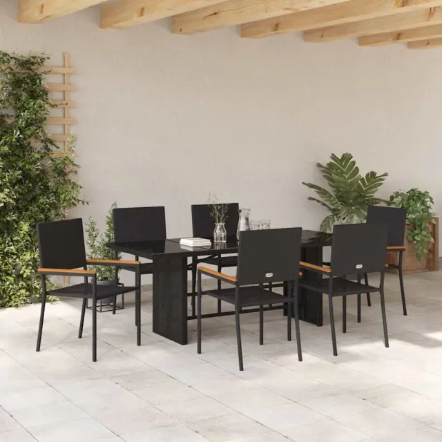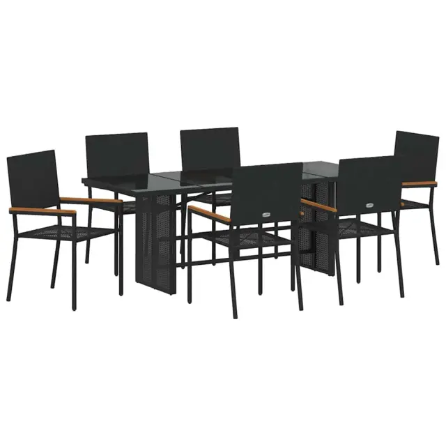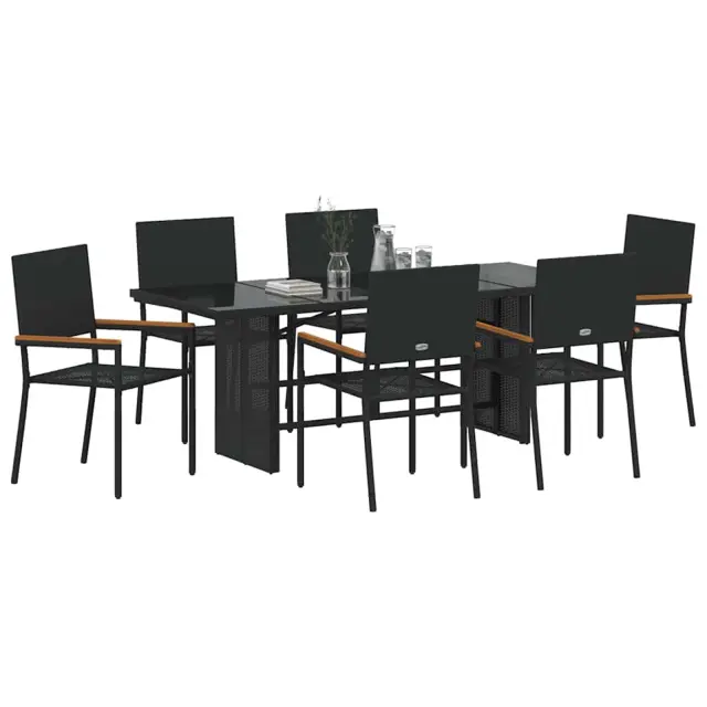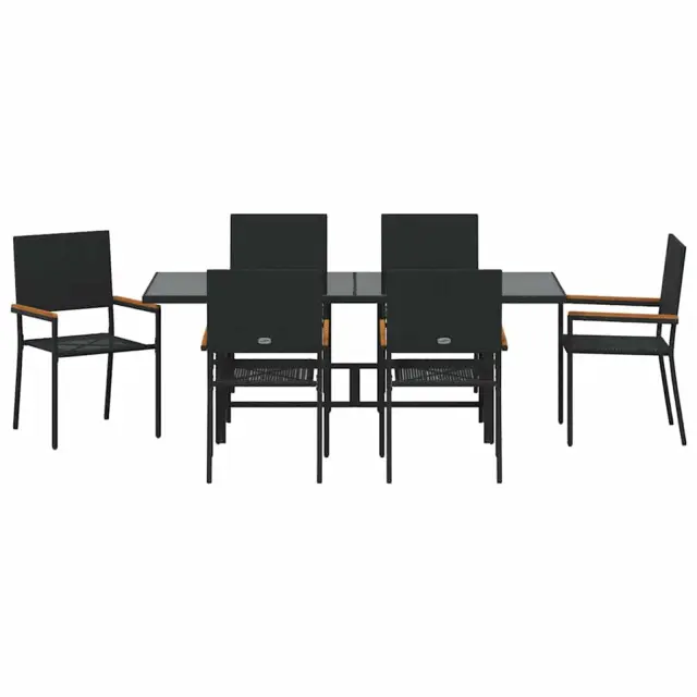 vidaXL Komplet za jedilnico v vrtu 7 pcs Črna 190 x 80 x 75 cm