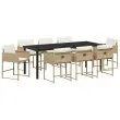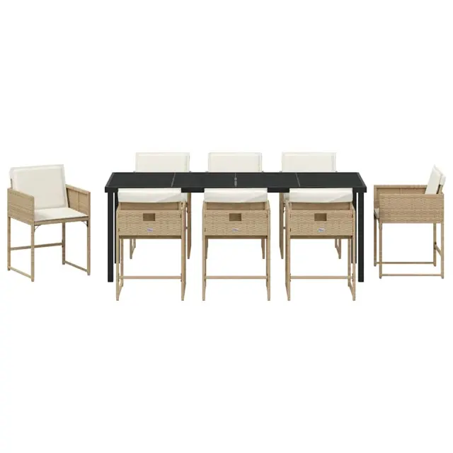 vidaXL Komplet za jedilnico v vrtu 9 pcs Bež poli ratan