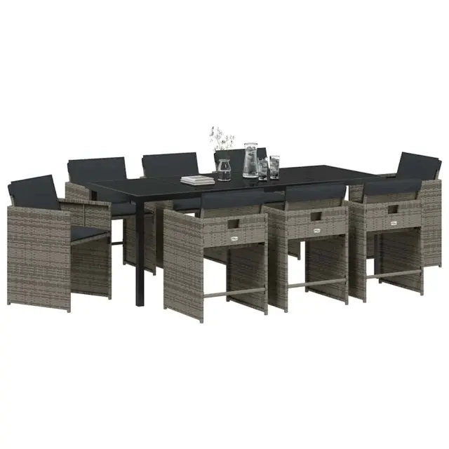 Ta kul vrtni lounge set združuje sodoben dizajn s praktično uporabo, kar ga dela vrhunskega za sproščanje na prostem. Narejen je za vse, ki si želijo eleganten in sodoben videz s čistimi linijami in brez nepotrebnih okraskov, kar res odraža njegovo trendovsko naravo. Idealno za vrtove in terase, pri njem gre le za to, da spodbudi prijatelje in družinico, da se sprostijo v udobju in stilu ob čudovitem naravnem prizoru.