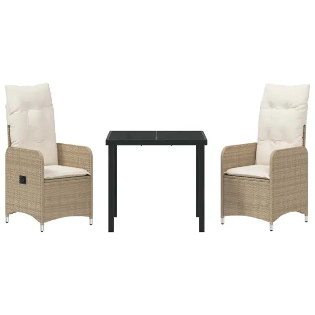 vidaXL Komplet za jedilnico v vrtu z blazino 3 pcs Bež Poly ratan