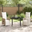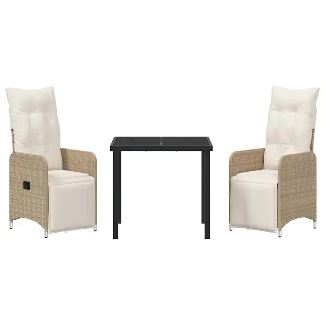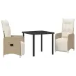 vidaXL Komplet za jedilnico v vrtu z blazino 3 pcs Bež Poly ratan