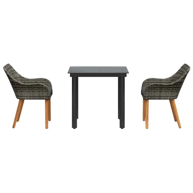 vidaXL Komplet za jedilnico v vrtu z blazino 3 pcs Siva poli ratan
