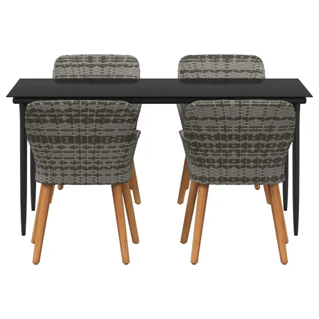 Ta vrtna jedilna garnitura ti ponuja šik in udoben prostor za obedovanje zunaj, idealno za druženje s prijatelji ali družino. Ima sodoben dizajn, ki tvojo vrtno ali terasno okolico popestri, in ustvari prijetno atmosfero za obroke na prostem, ko je vreme toplo. Narejena je iz trpežnega poli ratana, kar se super ujema z elegantnimi vrtnimi stili.