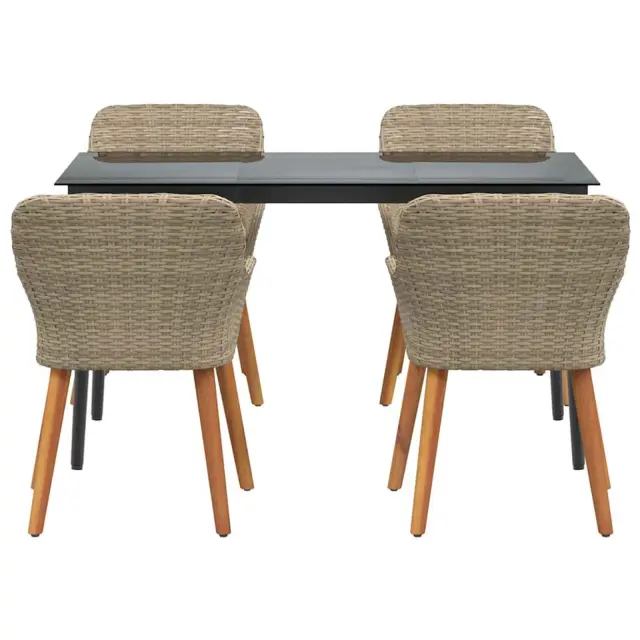 Ta vrtna jedilna garnitura ti ponuja šik in udoben prostor za obedovanje zunaj, idealno za druženje s prijatelji ali družino. Ima sodoben dizajn, ki tvojo vrtno ali terasno okolico popestri, in ustvari prijetno atmosfero za obroke na prostem, ko je vreme toplo. Narejena je iz trpežnega poli ratana, kar se super ujema z elegantnimi vrtnimi stili.