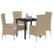 vidaXL Komplet za jedilnico v vrtu z blazino 5 pcs Bež poli ratan