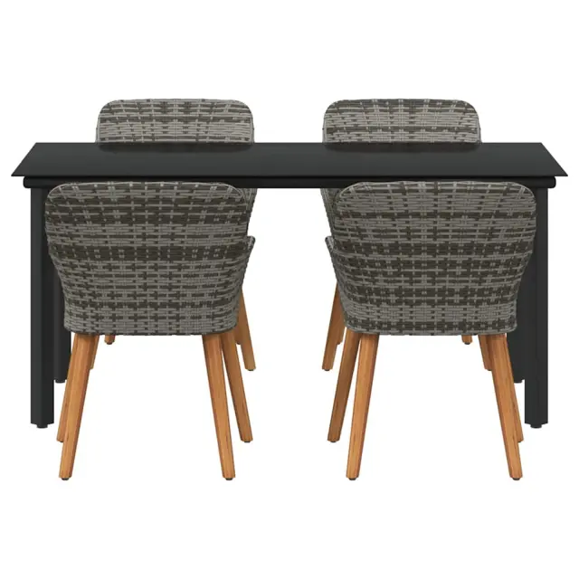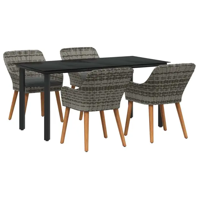 vidaXL Komplet za jedilnico v vrtu z blazino 5 pcs Siva poli ratan