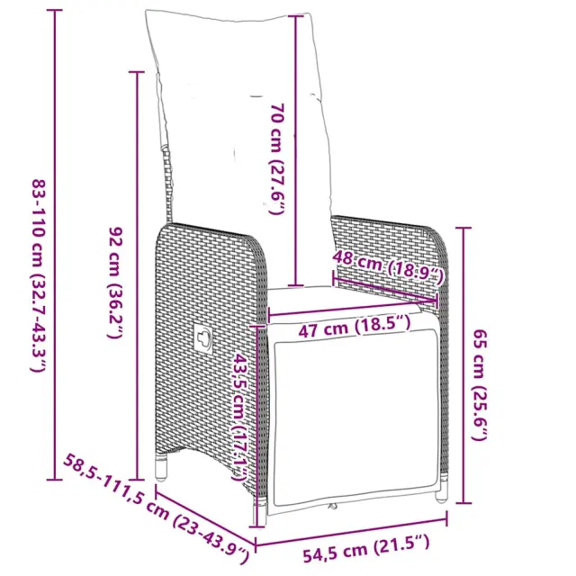 • Vse, kar potrebuješ: Set vključuje stilizirano naslonjalo, odstranljivo sedežno blazino z zadrgo in mizo iz kaljenega stekla. Zasnovana za maksimalno udobje, prilagodljive ročice in ravni naslonjalci ti omogočajo sprostitev.