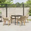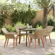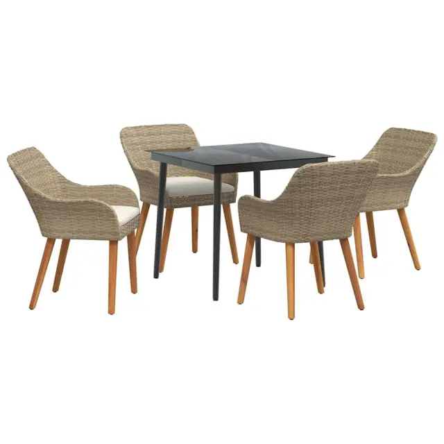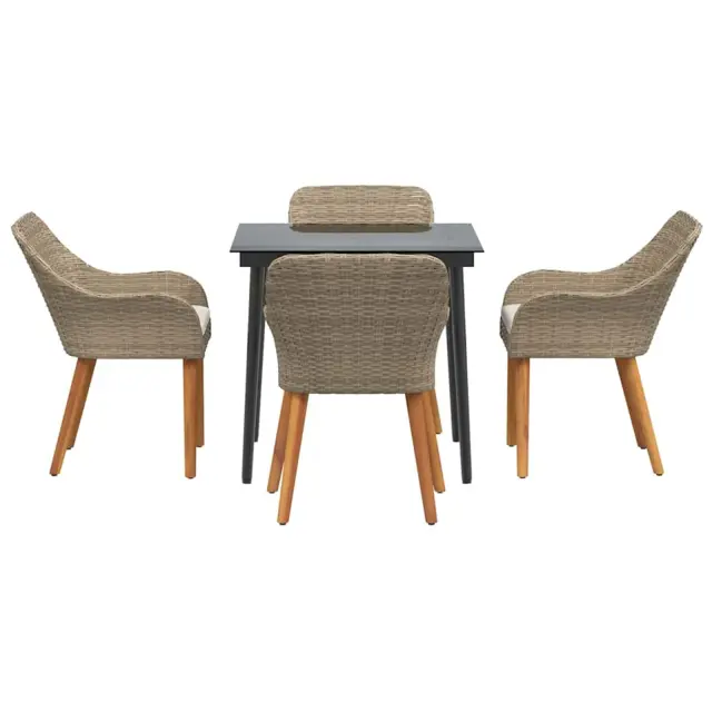 vidaXL Komplet za jedilnico v vrtu z blazino 5 pcs Bež poli ratan