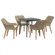 Ta vrtna jedilna garnitura ti ponuja šik in udoben prostor za obedovanje zunaj, idealno za druženje s prijatelji ali družino. Ima sodoben dizajn, ki tvojo vrtno ali terasno okolico popestri, in ustvari prijetno atmosfero za obroke na prostem, ko je vreme toplo. Narejena je iz trpežnega poli ratana, kar se super ujema z elegantnimi vrtnimi stili.