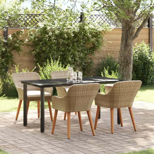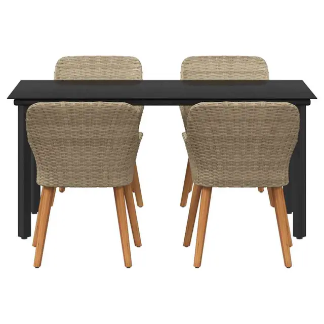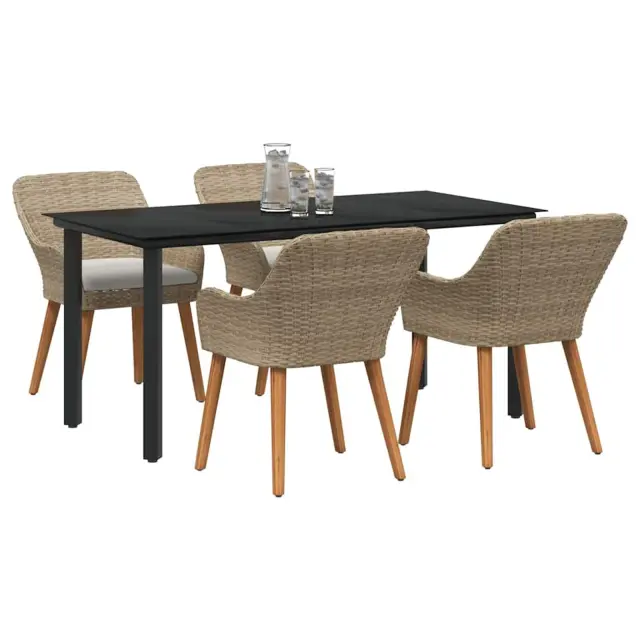 vidaXL Komplet za jedilnico v vrtu z blazino 5 pcs Bež poli ratan