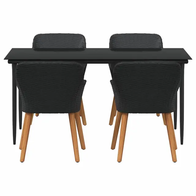 vidaXL Komplet za jedilnico v vrtu z blazino 5 pcs Črna poli ratan